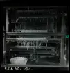 Tillverkning av bögsäcksfässlor, vävning, flätning, slingning, i Gruddbo by. Interiör med två arbetande kvinnor.