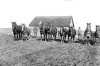 TRE MÄN HARVAR OCH SÅR MED HÄSTAR EN PÅ ÅKERN