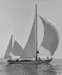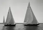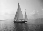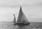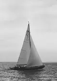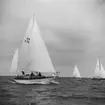 "'Havsörnen' /Sea Eagle/ designed by Tore Holm, sailed and owned by Sven Salén, was a superior winner of the race around Gotland 1937. Nr. 29 is another Swedish yacht, 'S'Marianne' av Torö, belonging to Mr. Lidman." "Photo: Harry Nyström Stockholm 16"