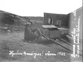 En och en halvvånings bostadshus. 2 vuxna och 5 barn framför huset. Erik Granbergs familj: Föräldrarna Erik och Augusta Granberg och barnen: pappan Erik håller Elsa i handen, mamman Augusta med Karin, Ivan håller i cykeln med Elmer vid hjulet och Ina vid busken. Familjen bodde i Granbergsdal. Pappan Erik byggde nytt hus 1922, Hagvägen 24, Almby, snett över vägen till Granbergsdal. De fick 6 barn, 4 flickor och 2 pojkar. Dottern Inga finns inte med på bilden. Dottern Elsa Viklund, född Granberg (uppgiftslämnarens mamma) föddes 1913 och dog 2007, nästan 94 år gammal. Elsa och hennes man köpte år 1954 Hagvägen 24 av Erik Granberg. Hon bodde kvar där fram till 1996. Grunden till Granbergsdal finns kanske kvar i botten av det hus som står där nu. Det blev på- och ombyggt.