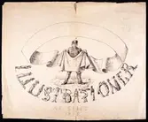 "Dagbladsannonser med illustrationer af stift". Tuschteckning av Fritz von Dardel