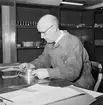 Rantens Strå- och filthattsfabrik. Efter maskinpressningen slipas eller lystreras filthatten.