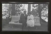 "Frida och Axel vid Skansen." Makarna Fredriksson sitter tillsammans på en parkbänk.