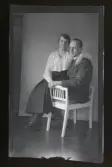 "Från Stockholm." Porträtt av ett par. Hon sitter i hans knä, med ena armen om hans axlar.