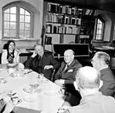 Skara. Fotohandlarmöte i Stockholm slutet av 1940-talet. Gösta Johansson, Fotocentralen. Göran Pettersson o Tittie Rehn.