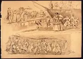 "Resan till Norrige, Kanalvägen juli 1855". Vallfart till Vreta Kloster. Akvarell av Fritz von Dardel