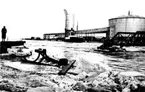 Höststormen far fram vid badhuset Najaden i Gävle. September 1937