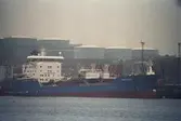 Karl Ask Färg kemikalie & tapetaffär i hörnet Nygatan-Österbrogatan. Herr Borgman står framför affären. Jordbrukarebanken.