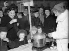 "Lottornas julmarknad gav rekordinkomst. Fullkomlig folkträngsel på Fyristorg" - Uppsala december 1942