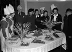 "Bordet med fullvärdigt bröd beundras" på Fackskolan för huslig ekonomis utställning i samband med en hushållkurs om vardagsmat i kristid, Trädgårdsgatan 14