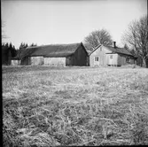 "Skarins stuga" i Värö med åker i förgrunden. Gård med bostadshuset till höger och till vänster ladugården med två utbyggnader. (Se även bild nr EA0486)