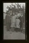 Man med sadlad häst på ladugårdsplanen vid Ökna säteri i Floda socken
