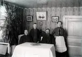 Soldaten Fri:s barn. F.d. Soldaten Carl August Frejs 75-årsdag. Vid stugknuten i hemmet Lilla Edet i Fallet. Fr.v. stående syskonen: 1. Lars Gustav Friberg, skomakare i Bäckedalen, Timmersdala. 2. Fredrik Nord, korpral, soldat i Berg 3. Adolf Brandt, knekt, korpral, Ledsjö 4. Maria Cathrina, kallad "Håka-Larsa-Maja". Sittande : 1. Hustrun Klara, född Nilsdotter 2. Karl August Frej (se: Norra Billing, Medlemsblad 1995).
