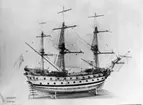 Varvsmuseet i karlskrona. Modell av linjeskeppet Kronprins Gustaf Adolf i Chapmanssalen.