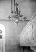 Kung Karl sn, Kungsör. Ljuskrona och kyrkbänk i Kung Karls kyrka.