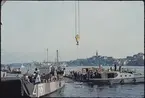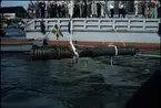 Isbrytaren SANKT ERIK. Pontonkranen LODBROK kopplas för bogsering.