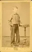 Konteramiral Johan Erik Samuelson står på ett gräsfält med tre andra officerare. Troligtvis betraktar han skjutbanorna. I bakgrunden syns en lång vall.