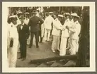 Bilden visar fartygschefen Eklund i samtal med en man i civila kläder med namn König.