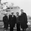 Utrikesministern Ola Ullsten går ombord på torpedbåten Varberg.