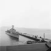 Passagerare går i land från S/S Malmö vid Malmö färjeläge.