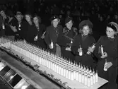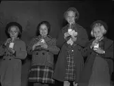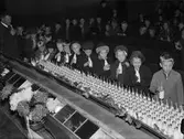 "Mjölkdrickning genom kobbelrör är slagnummer. Uppskattad skolpropaganda under mjölkveckan", Uppsala 1938