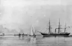 [från Fotobeskrivning:] "Monitoren JOHN ERICSSON och ångkorvetten ORÄDD vid Rödesten sommaren 1866."