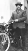 Oskar Karlsson med sin "Colibri", på vilken han åkte ända neråt Kinnekulle och Vinninga som skogsplantör. Reprofotograf: Gunnar Berggren.
