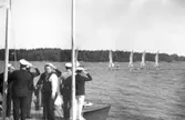 Från den s k Segelveckan i Helsingfors i juli 1931, arrangerad av Finlands Seglarförbund och Nyländska Jaktklubben. Den enda båt på bilden som kunnat identifieras är Erik Åkerlunds motorjakt STELLA MARINA (b. 1927, konstr. C. G. Pettersson). I mitten ses NJK:s klubbhus på Blekholmen.