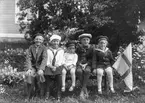 "Kusiner". Fem barn på en bänk. Lima, Dalarna.