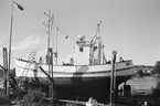 S/S Norrskär byggd år 1910 vid Nybroviken, Stockholm den 20:e december 1983. omfattande reparationsarbeten ombord. däckbalkar vid lejdare (trappa) till promenaddäck.