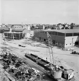 Karlshamns stationshus och godsmagasin. Nybyggt 1957.