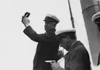 Officerare går nedför landgång. Tid, plats och sammanhang okända.