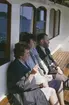 Flera arbetande kvinnor på däck. Kapten i bakgrunden.