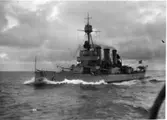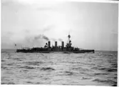 Gåva av Ingrid Jewrell änka efter Bo Jewrell marinofficer. Pansarskeppet Gustav V med kamouflagenät