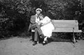 Äldre kvinna på parksoffa. Gottfrid Karlsson