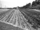Två personer arbetar med att lägga (sätta) potatis, "Sandbergs" Sagered 3:3 cirka 1960. En utav dem är Hilda Sandberg (1887-1973).