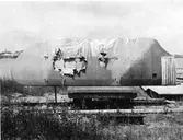"BOFORS 19/10 1905 Provskjuten pansarplåt." "I mitten fr.v. Konteramiral C.O. Olsen /Helskägg/ Kapten C.G.Wahlberg Kom.kapt.A.B. Juel" [sic]
