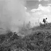 Dokumentation av Falu rödfärg. Bilden tagen uppifrån en av råvaruhögarna, i förgrunden tegelbyggnaden och slammeriet, byggt 1925. I bakgrunden "hyttan" som köres för fullt enligt röken från skorstenen.