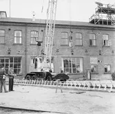 Frimärke ur Gösta Bodmans filatelistiska motivsamling, påbörjad 1950. Frimärke från Tyskland, 1956. Motiv av Berlins Utställningshallar vid Radiomasten