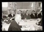 511 Gripsholms Slott för Allers. En kvinna och en man skakar hand framför en skylt för Restaurant.