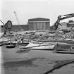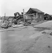 Rivning av byggnad intill E. & K. Karlssons järnhandel vid Gamla Kungsbackavägen i Broslätt, Mölndal.