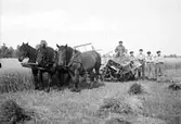 Havreskärning med självbindare i Karlstorp, 1940-tal