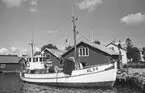 Fiskeläge i Rävsnäs. Förtöjda roddbåtar.