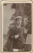 Denna porträtt visar den tyske sjöofficerare Fritz Lembke som poserar som jägare. Han är klädd i jaktdräkt och hat, bär en hagelbössa över axeln och håller hundkoppel till två jakthundar i sin hand.