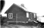 "Maja-Stina vid Sjön". Reprofotograf: Gunnar Berggren. Maja-Stina Eriksson, Sänningen. Skäktade lin och spann. "Ja har så ont i skanka, se ja kan ente hôppa över stôva!" (=storskogen) 50 öre/dag vid potatisplockning i Bredebolet ansågs vara BRA betalt. Hade en fåra i en gammal kolkoja.