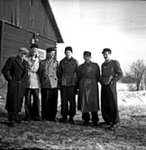"Skogshuggare". Skofabriksarbetare fr. v: Tage Larsson, Holger Johansson, Bertil Olsson, Karl Rehn, Lars Larsson, Stig Rehn 1942.