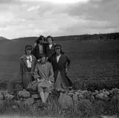 Folkskolans tävlingar, 1944. Ett antal barn hänger över räcket framför hedersläktaren och hejar på sina tävlande.