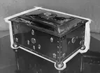 Färdskrin från Korparyd. Mått: 37,5 x 28 x 25 cm.