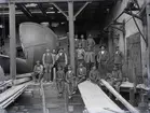 "Arbetare i Munkedals fabrik. Omkring 1930." "Nitarlag."