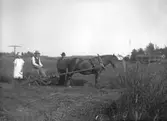 Dingtuna, Vångsta. Slåttermaskin dragen av traktor. 1936.